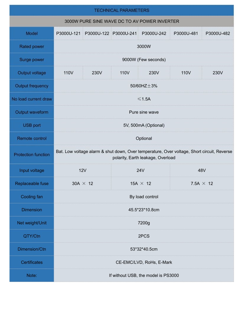 3000W onda senoidal pura DC para inversor de energia CA