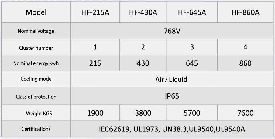 ● Alta segurança: a seleção de células de fosfato de ferro de lítio seguras e estáveis; Grade de proteção IP55 para atender às necessidades de aplicações externas; Estratégia de combate a incêndio baseada em prevenção com sistema independente de combate a incêndio.